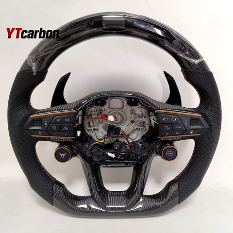 YTcarbon para Cupra Leon Tavascan Terramar Formentor Born Ateca Racing Style Volante LED de fibra de carbono real personalizado